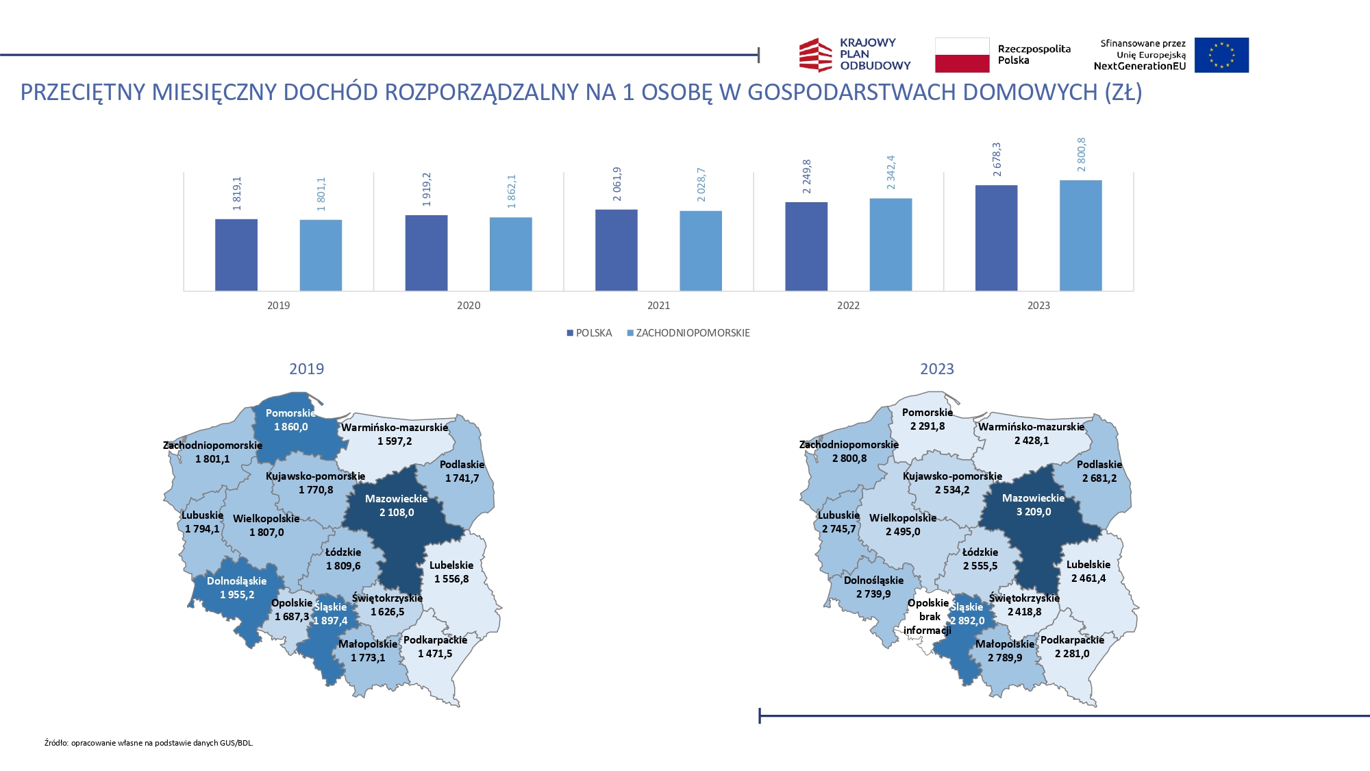 1. Przeciętny miesięczny dochód rozporządzalny na 1 osobę w gospodarstwach domowych