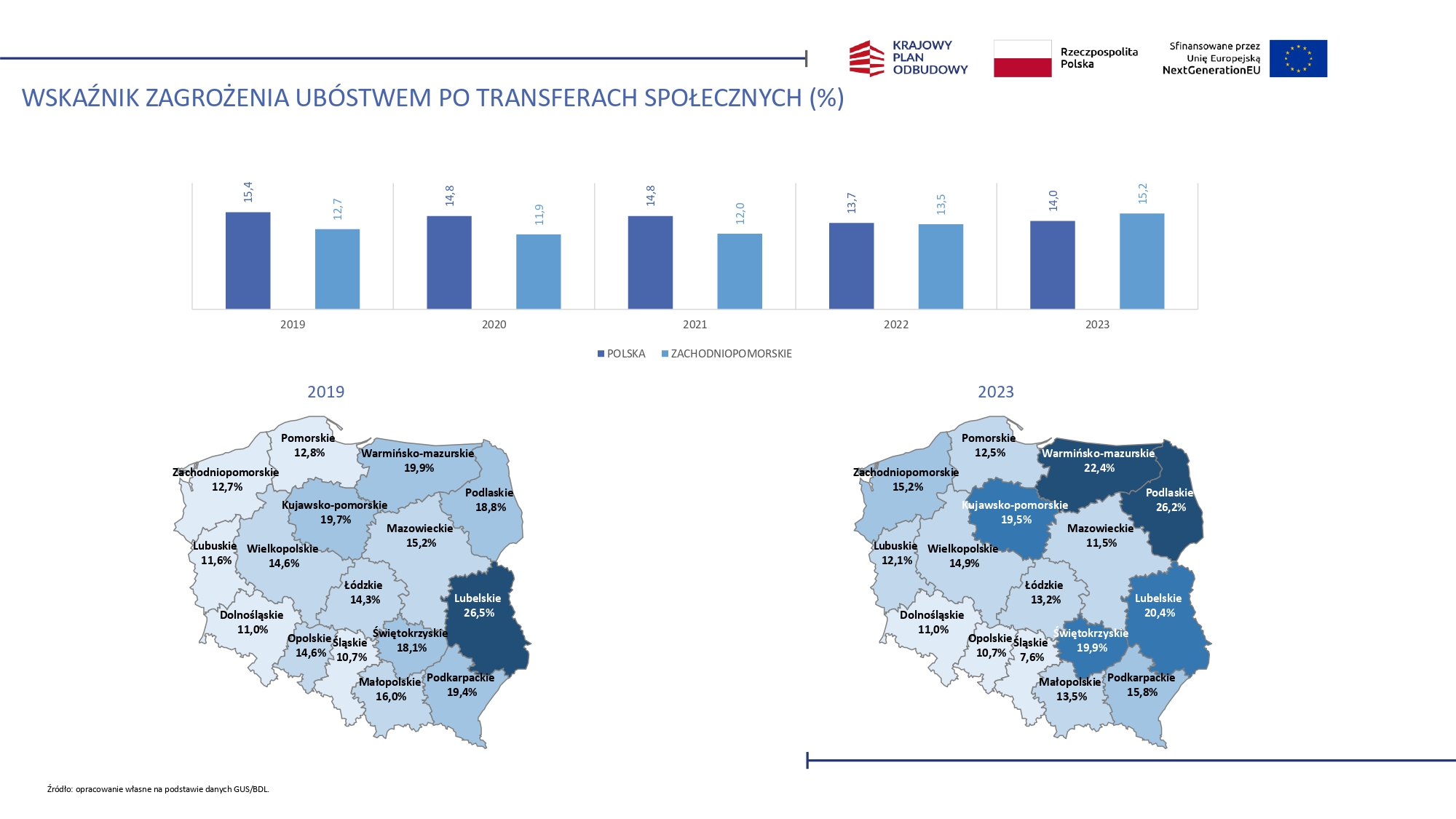 2. Wskaźnik zagrożenia ubóstwem po transferach społecznych