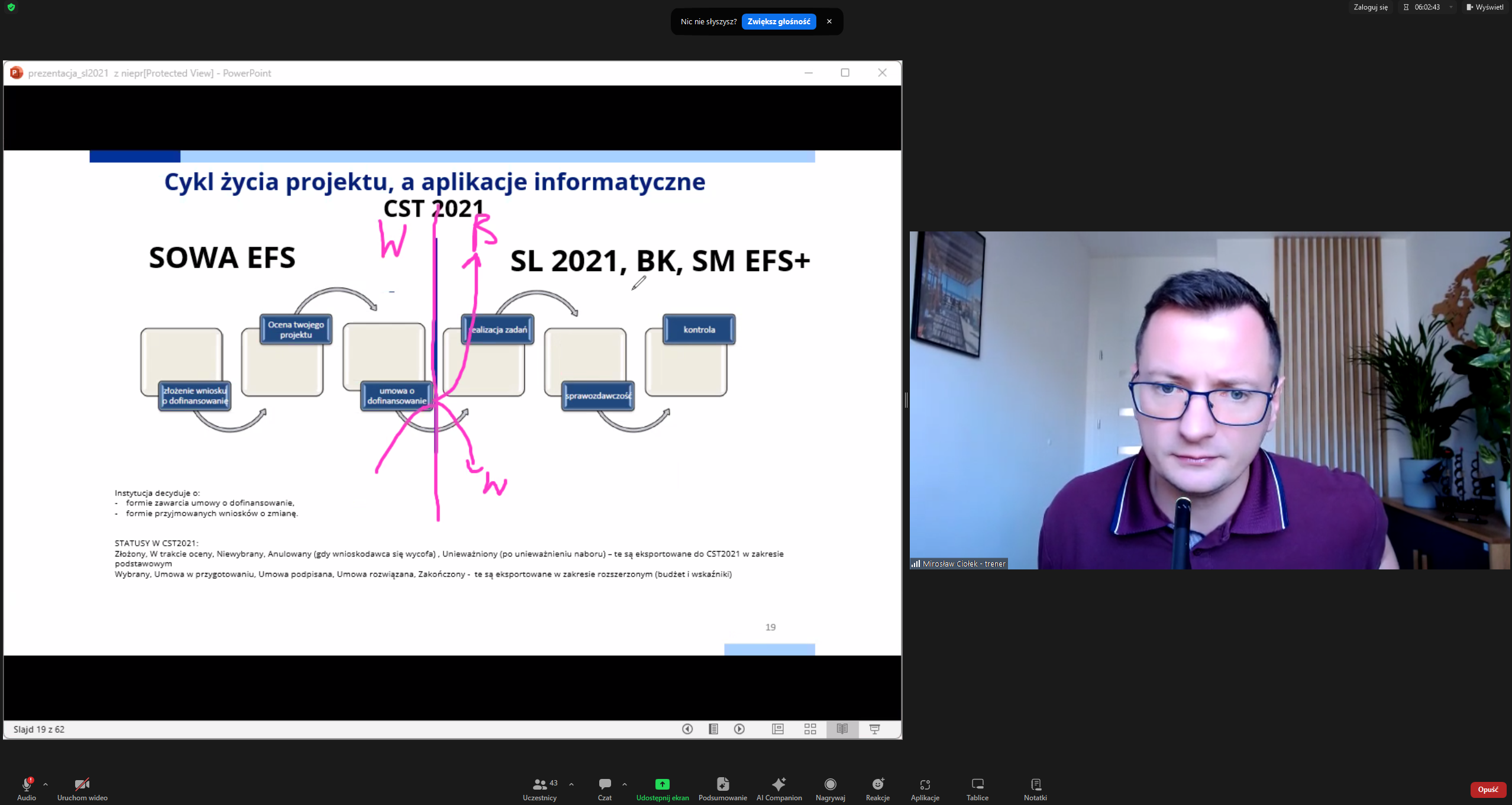 Poprowadził je Pan Mirosław Ciołek - trener z zakresu pozyskiwania i rozliczania projektów unijnych oraz z zakresu zamówień publicznych, doradca, przedsiębiorca, a także realizator projektów współfinansowanych ze środków EFS.