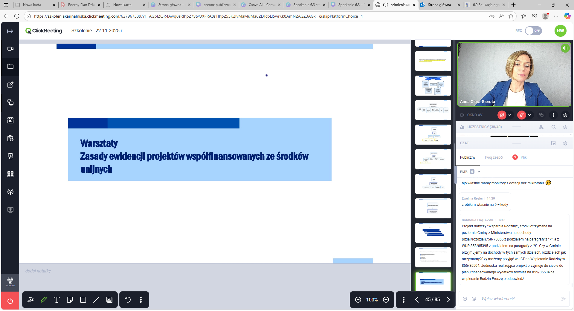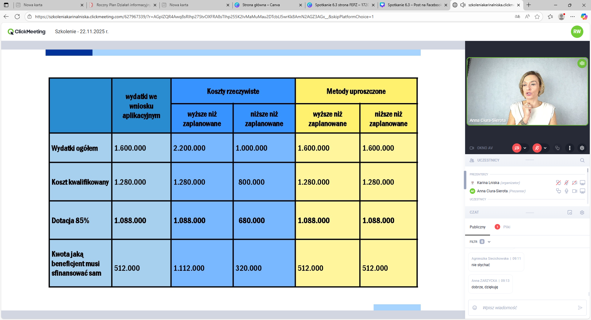 Szkolenie poprowadziła Pani Anna Ciura-Sierota, doświadczony trener specjalizujący się w szkoleniach z zakresu rozliczeń, księgowości i kontroli projektów współfinansowanych ze środków unijnych.